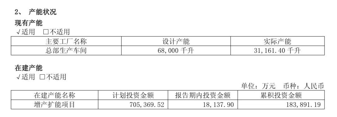 2025年年报败露,总部分娩车间产能68000千升,本体产能31161.4千升,产能应用率不到一半。